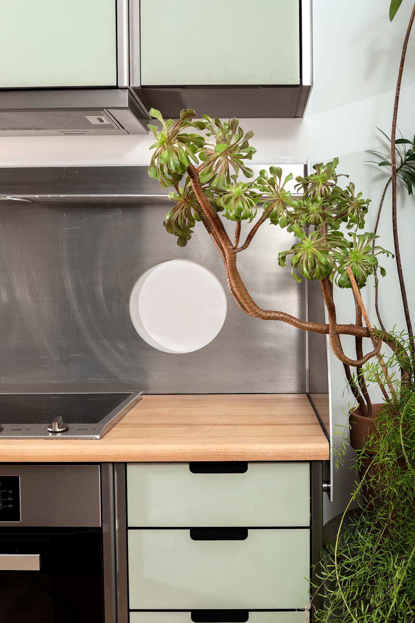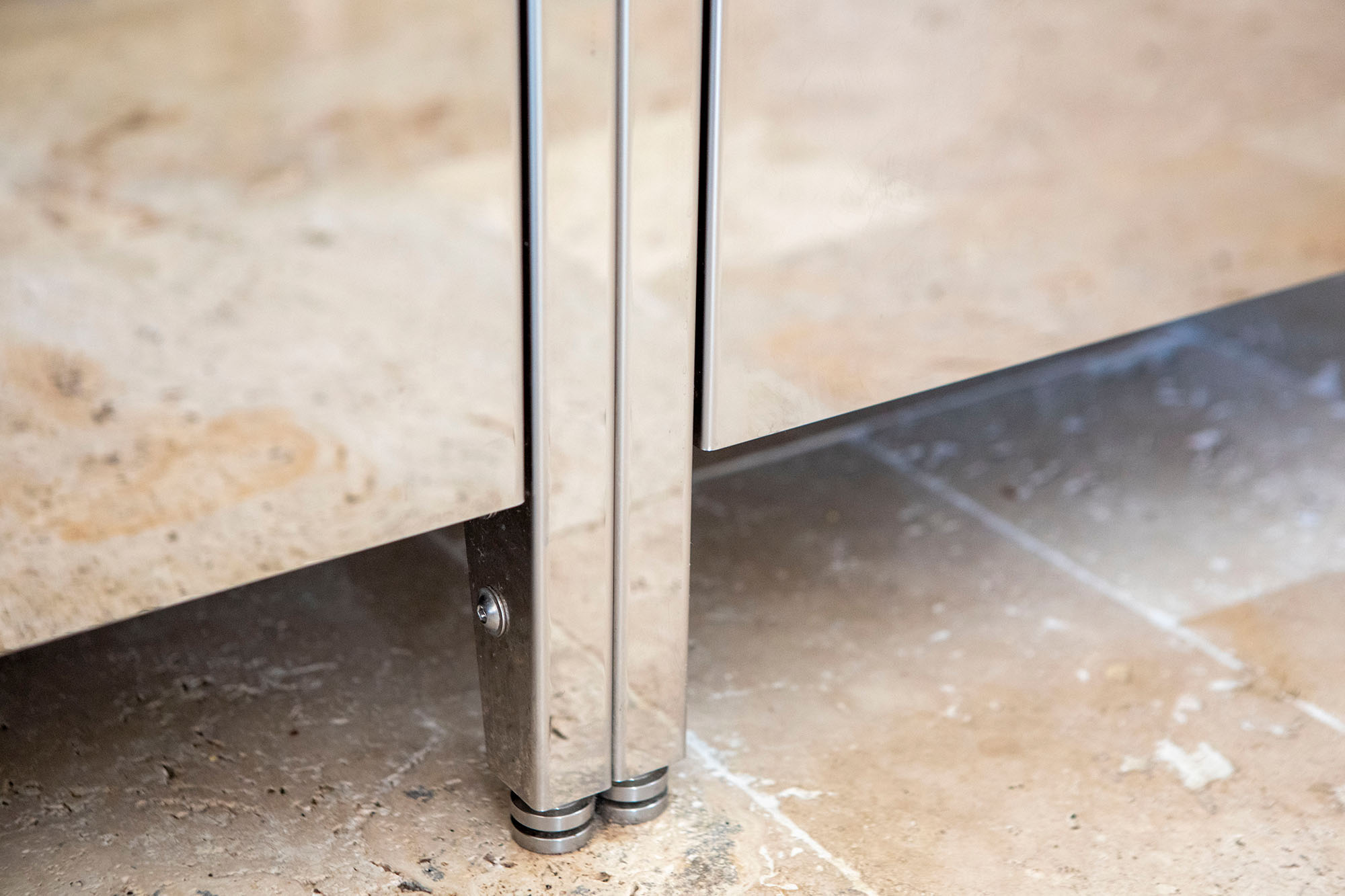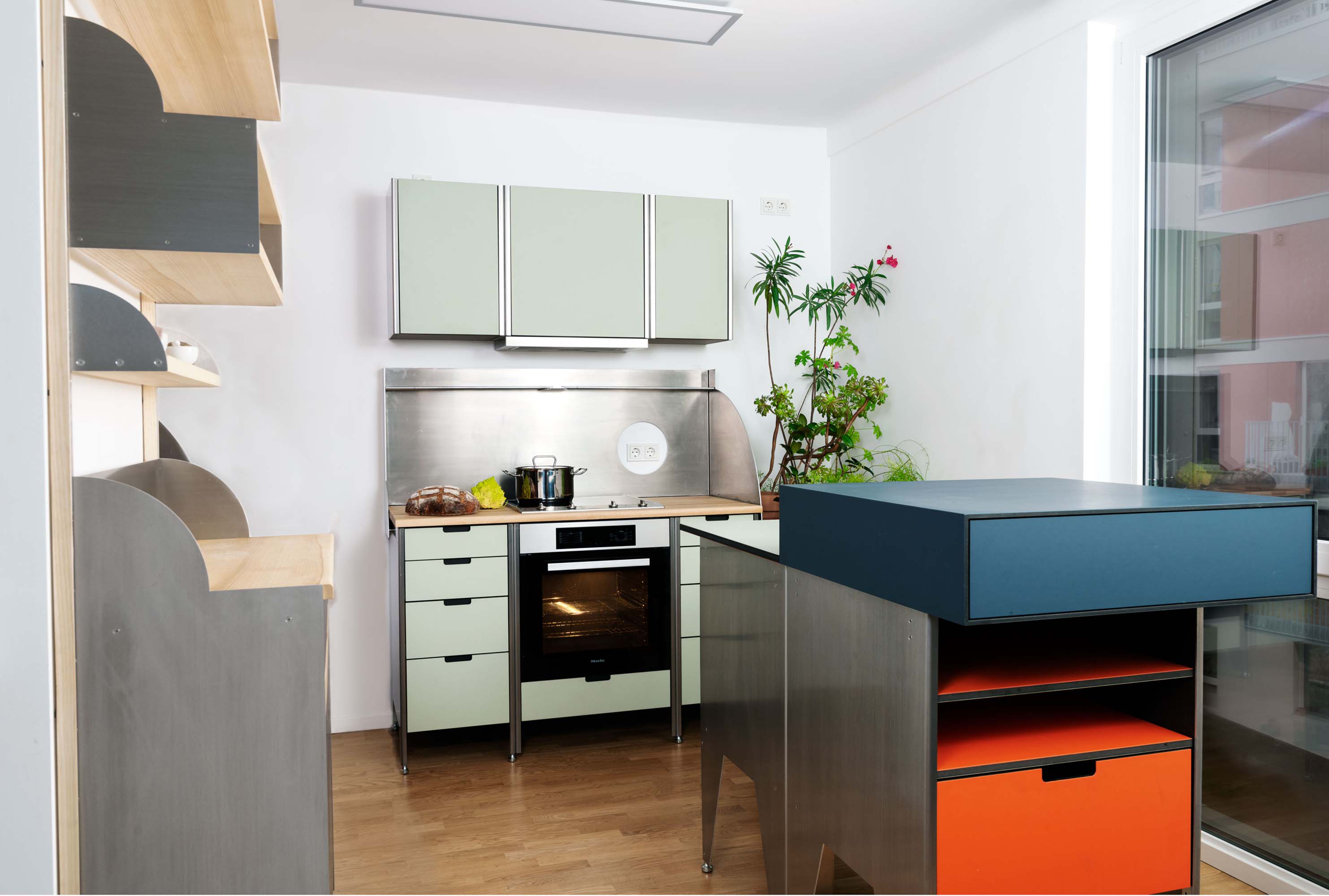 Monofolio embodies our vision for timeless, adaptable kitchen furniture that matures gracefully with its surroundings. By adopting a mono-material design with stainless steel as a „borrowed resource,“ our kitchens are exceptionally durable, fully repairable, and seamlessly reintegrated into the material cycle. The universal side-panel construction forms the foundation of Monofolio’s modular system, enabling flexibility for wall-mounted or freestanding configurations. Combining functionality with refined aesthetics, its reflective surface complements all interiors while maintaining distinctive in its character.