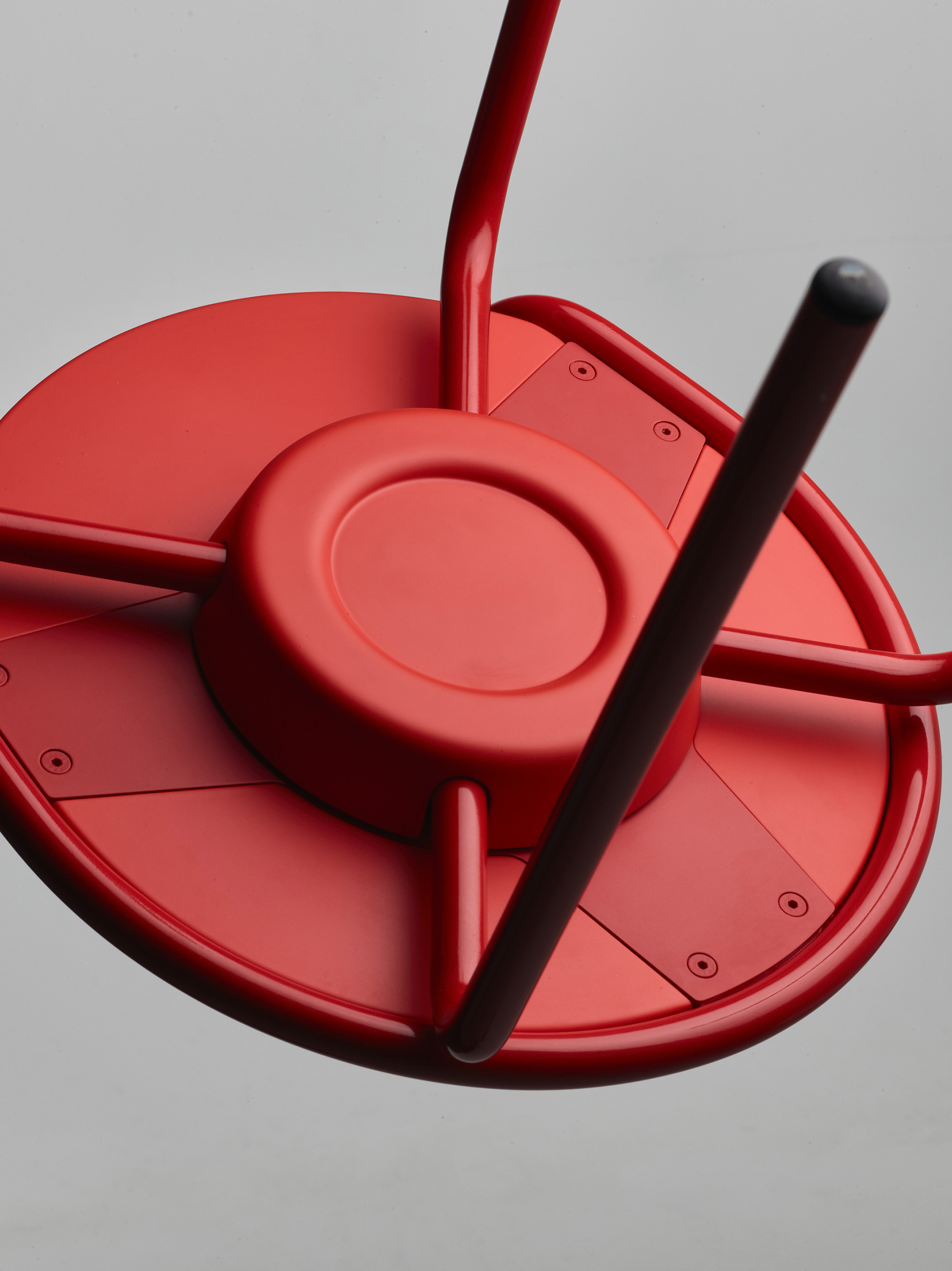 Swivel is designed as a chair for schools and supports pupils in their playful movements and thus also their concentration. The Swivel chair uses the typology of a classic school chair in its aesthetics. Its unique character is based on the combination of rotation, realised by a specially designed plain bearing, and the possibility to stack it. In contrast to existing rotating chairs, Swivel thus offers the necessary spatial mobility for current and future learning formats.