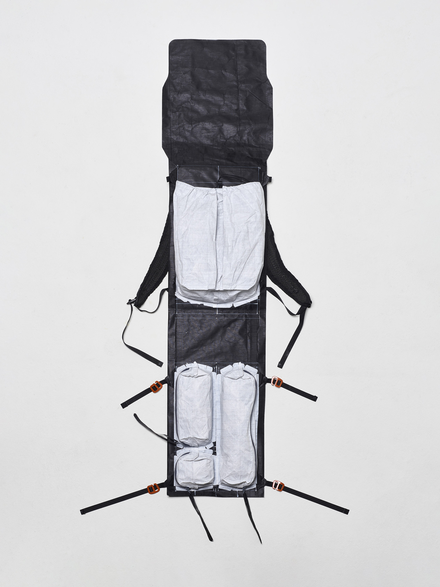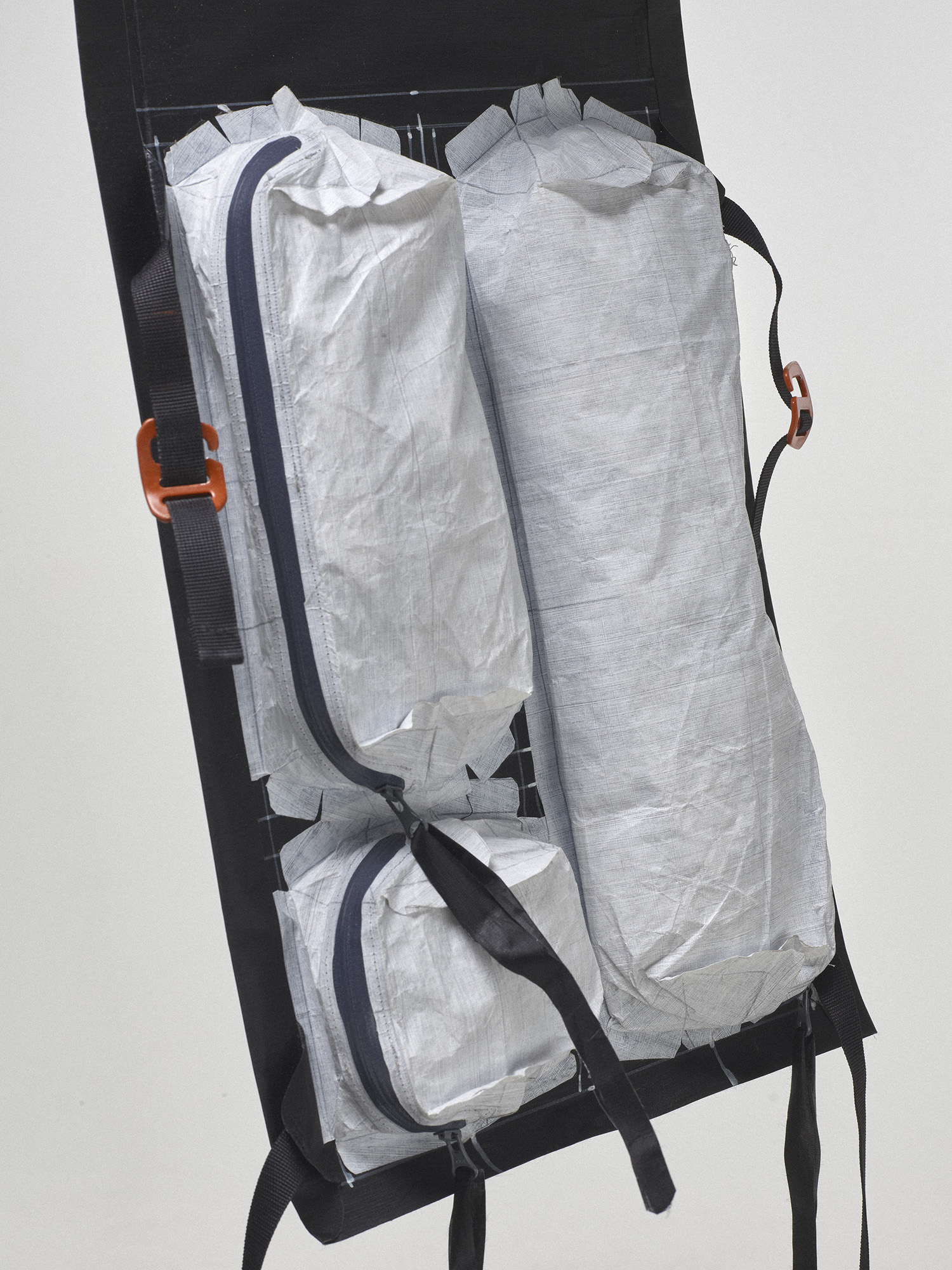 To make such a customizable and parametric design possible, a very simple production method is needed, since every backpack is different. Therefore, the backpack is produced flat and only folded into its three-dimensional form at the end of production. This principle offers many advantages and a unique design. The material of the Vara backpack is Dyneema, one of the strongest and lightest fabrics on the market.