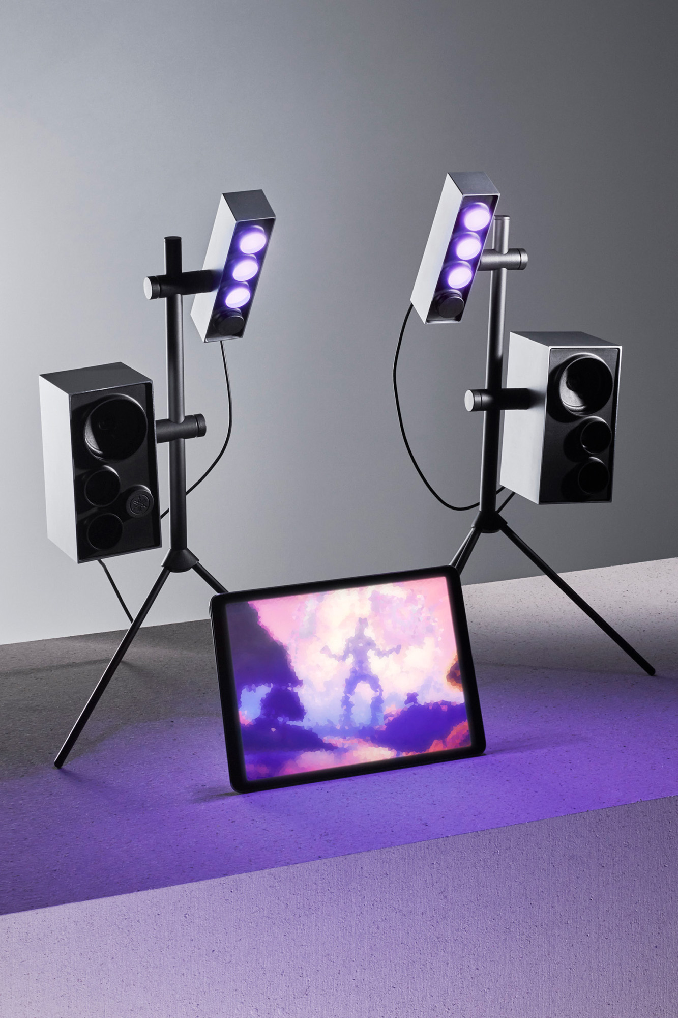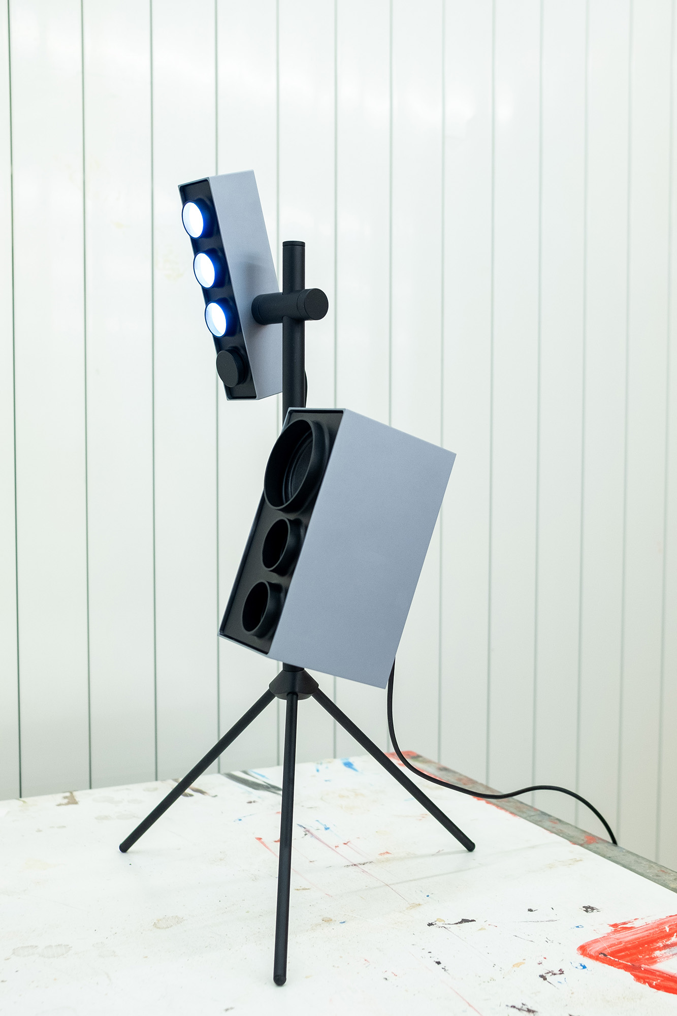 Solio was designed during the pandemic, when live concerts weren’t possible and everything felt strange. To bring a bit of that concert atmosphere home, I developed this sound and light device . Inspired by classic stage elements like spotlights and tripods, Solio combines stereo speakers and colourful lighting on table tripods. It creates a mini stage for your device, perfect for streaming concerts or enjoying music at home.