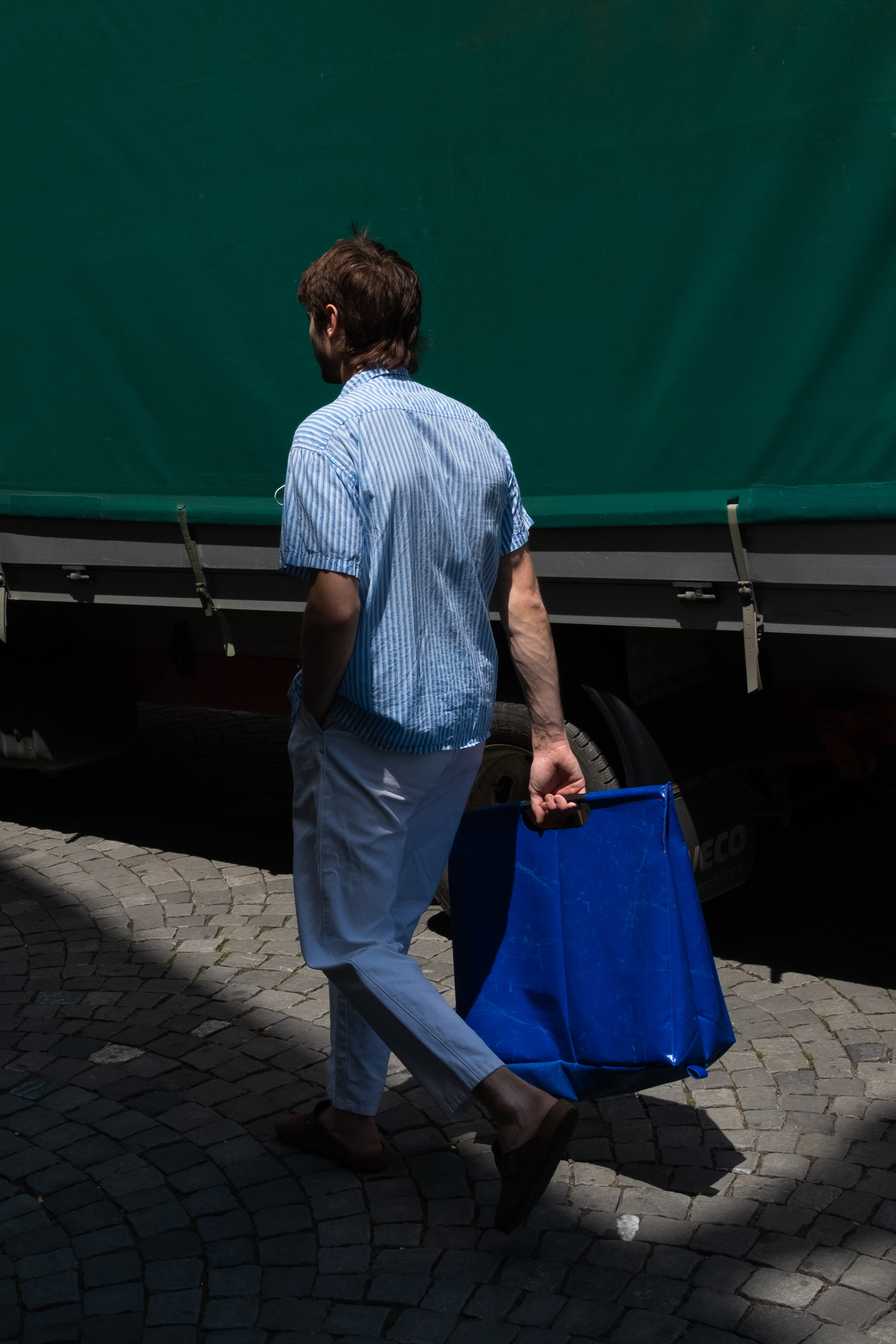 Bæg is a hybrid between a shopping bag and recyc-ling bin system, made from recycled truck tarp by Zurich-based company FREITAG. In contrast to ordinary bins, the portable fabric bag doesn’t require extra bin liners.  A functional designed wall hook allows it to easily attach, fill and remove the bag. Bæg aims to change the stigma towards our domestic waste. Acting not only as a fashionable bin at home but also as a tote bag on the go to the next recycling point or garbage can, it includes a visionary scenario of implementing recyclable waste in our everyday life.